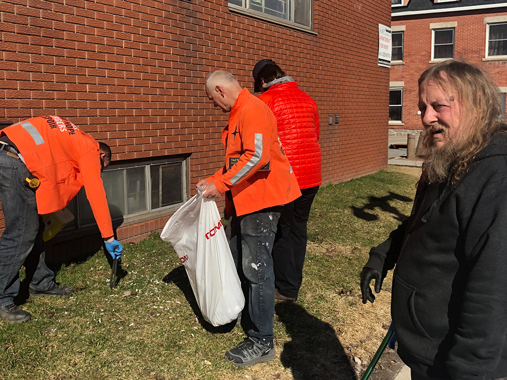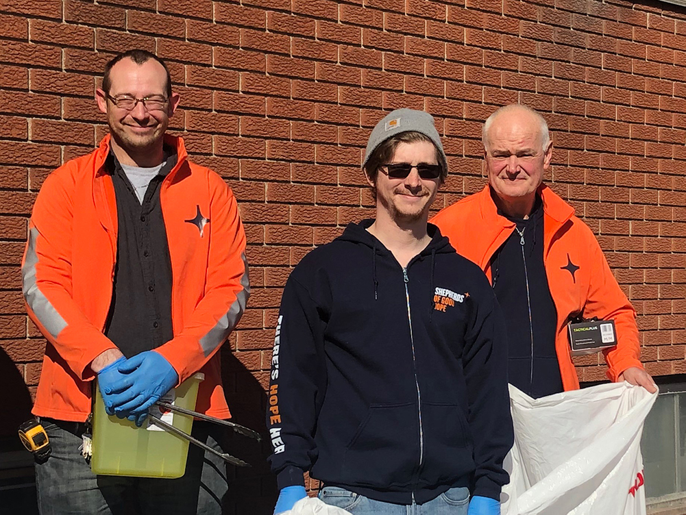 Ottawa, ON – Monday April 22, 2019 – Shepherds of Good Hope staff and clients participate in the #TrashTag challenge in an effort to continue to be a good neighbour and make a small part of our community cleaner.