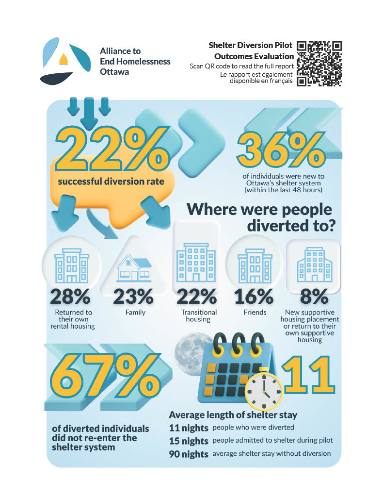The newly released Diversion Outcomes Evaluation Report, produced by the Alliance to End Homelessness Ottawa, outlines how effective diversion strategies, when implemented ethically and intentionally, can reduce returns to homelessness, strengthen community connections, and ensure shelters are used only when truly needed.