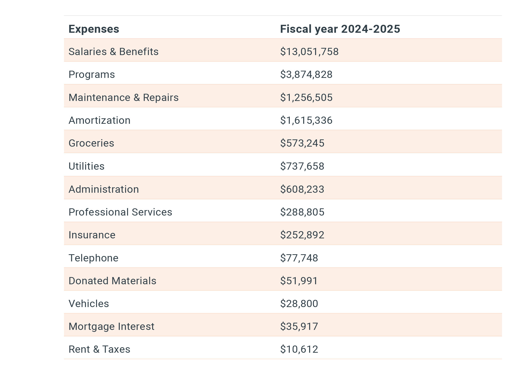 SGH Expenses by Program comparisons for 2024-2025 & 2023-2024